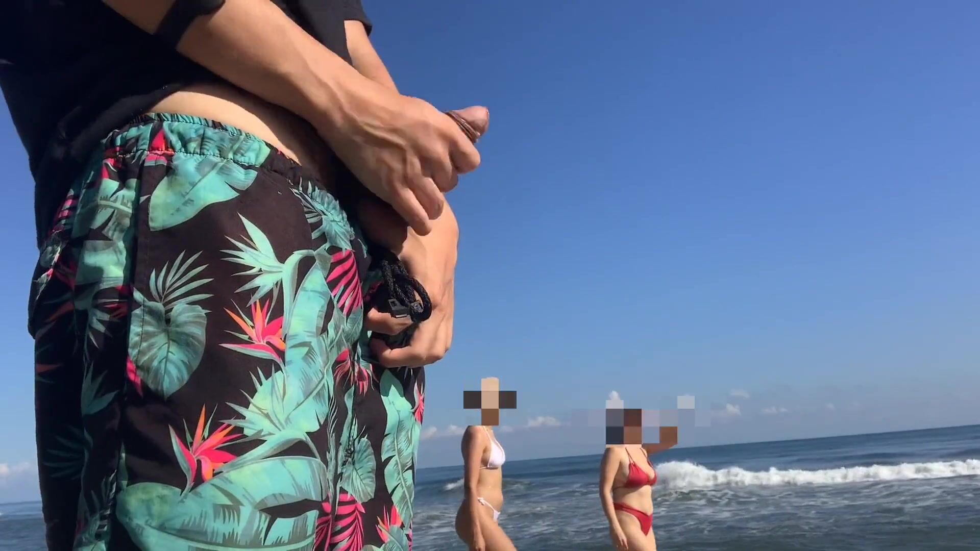 Public flash dick on the beach in front of two horny girls who crave my cock