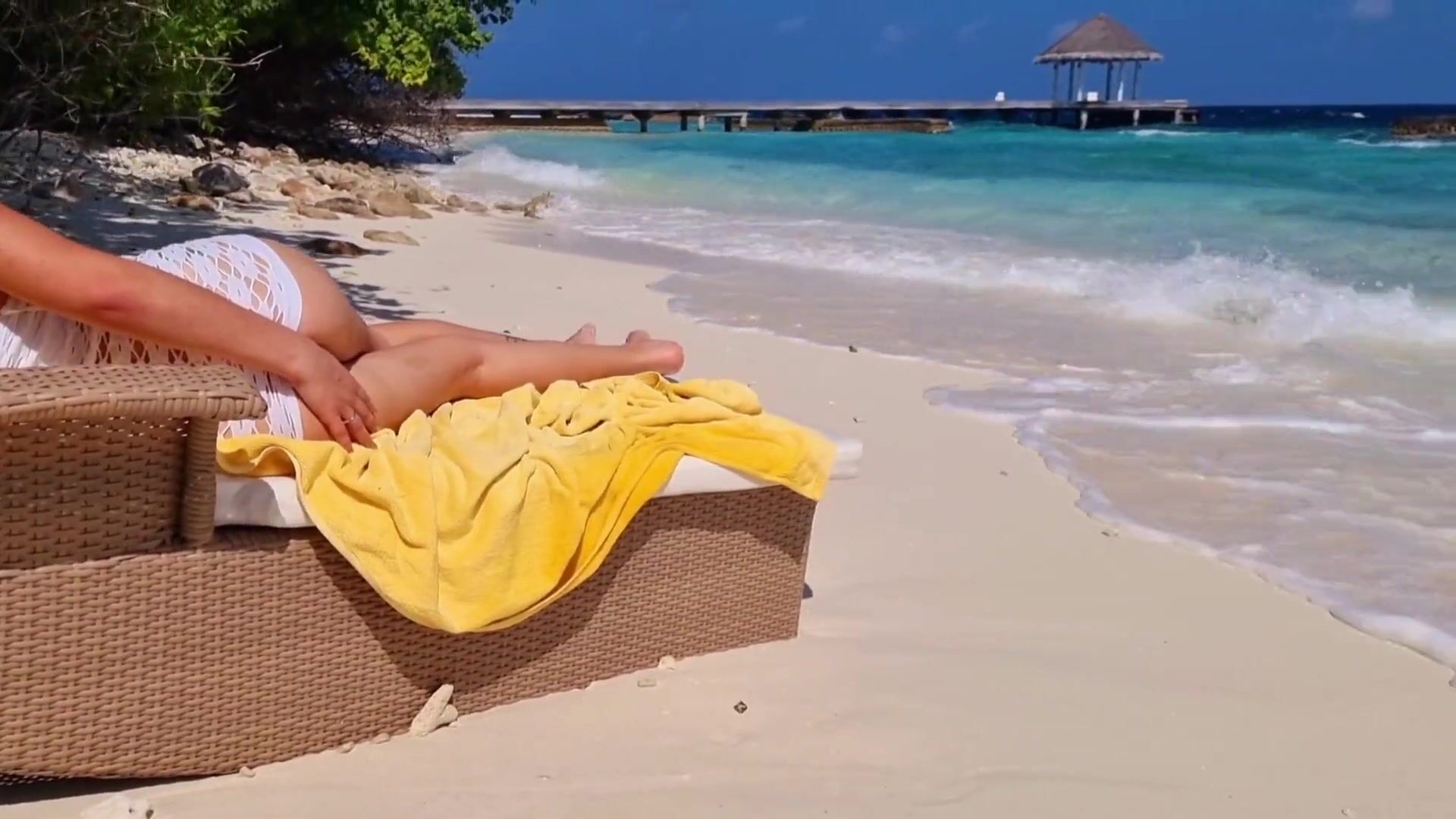 Blondy on beach show her ass
