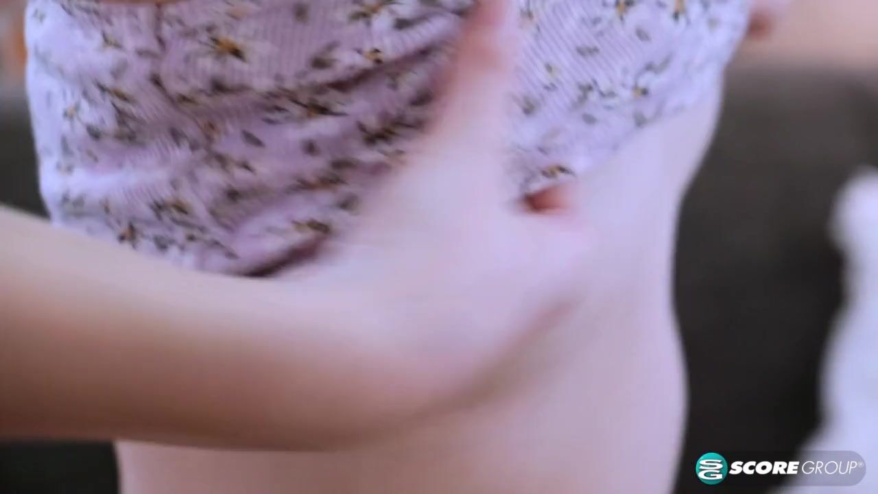 Adorable teenager Dakota ditches her pink panties and rubs her hairless pussy on the couch.