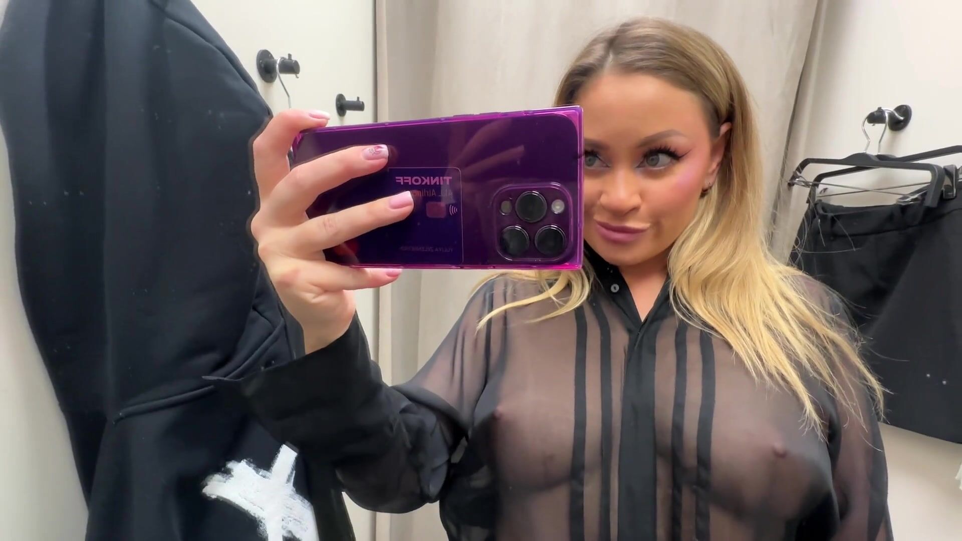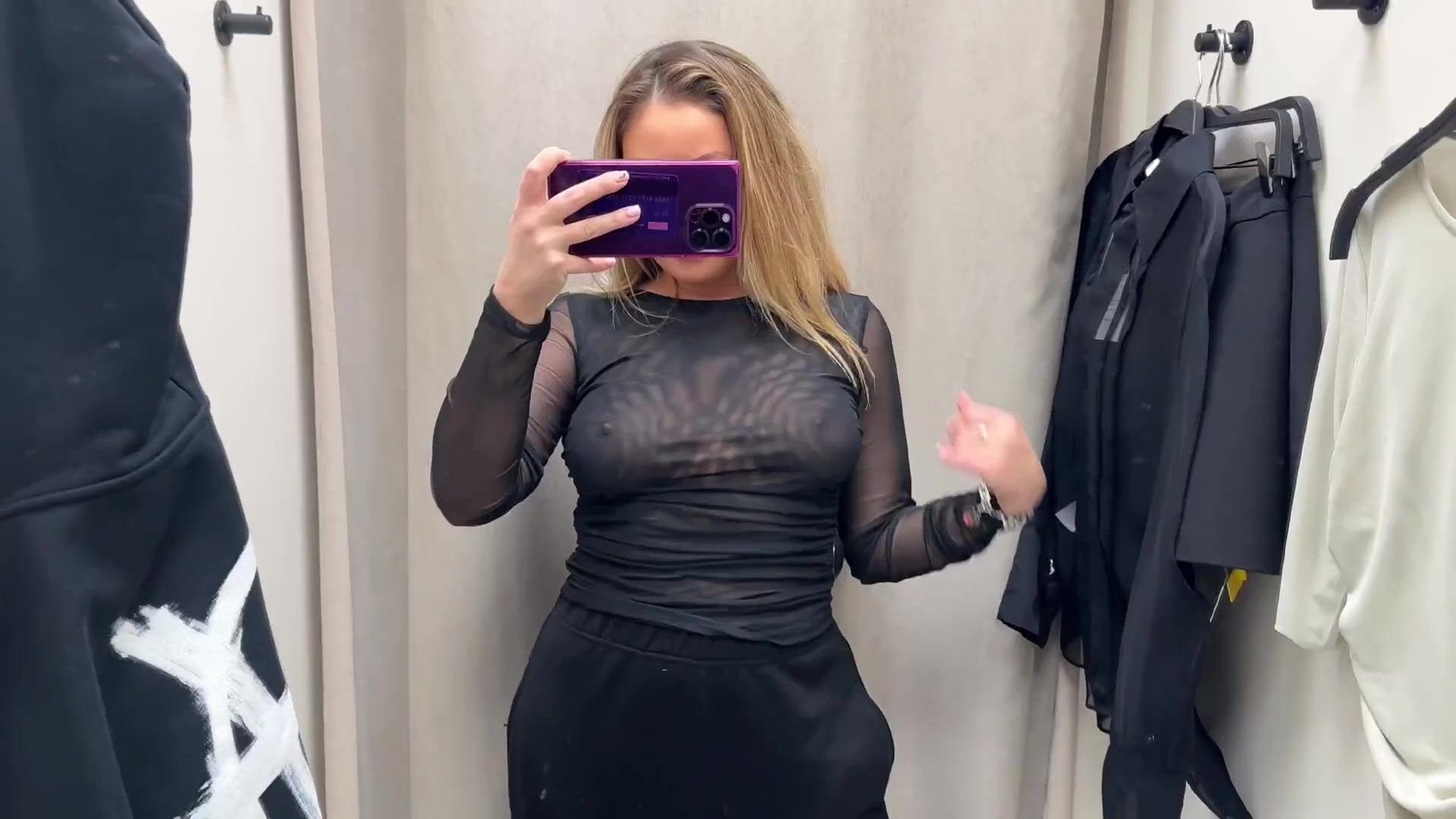 |4K| TRANSPARENT CLOTHES TRY ON IN FITTING ROOM