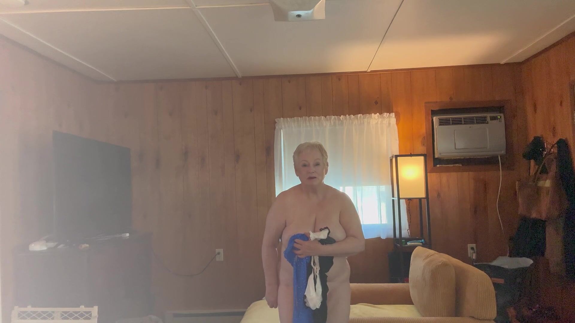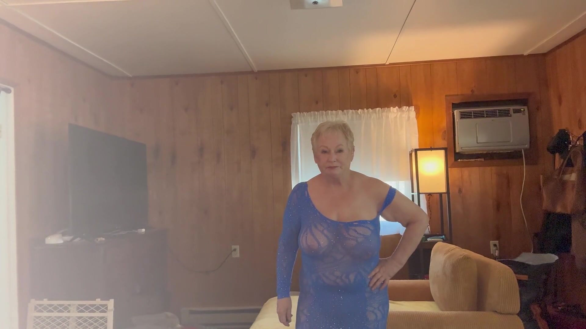 GILF TRIES ON SUPER TRANSPARENT BLUE DRESS